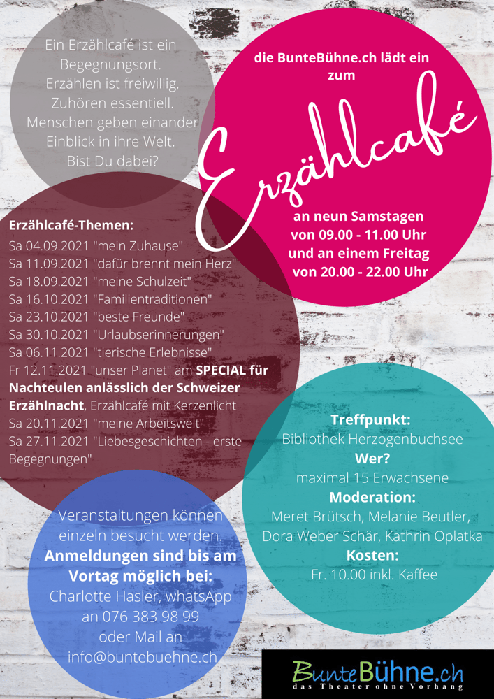 Für diese Veranstaltung gelten die Covid-Schutzmassnahmen der Bibliothek Herzogenbuchsee (Masken, Händesinfektion und Abstand halten). Wir behalten uns jederzeit vor, die Schutzmassnahmen an die Gesamtsituation anzupassen.